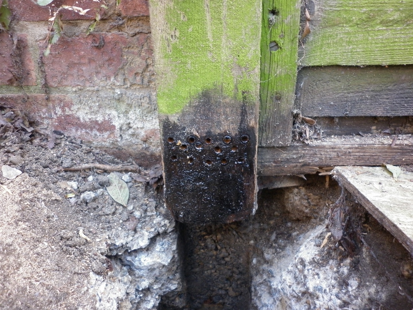 Click on the thumbnail to enlarge. How Much Do Fence Post Repairs Cost Expert fence post repair costs include a concrete repair spur, rot treatment, coach bolts, tools used, waste costs or hired, travel etc. £95 is a local expected cost from a fence post repair specialist. How to make wooden fence posts last longer Concrete post repair spurs are steel reinforced & called a Godfather repair spur. Designed to help support & stabilise new, broken or rotten existing wooden posts which helps wood posts last longer. Fence post levelling How to level a fence post is called plumb levelling, using level flush to the post side & front until the bubble is centred. String line attached to neighbouring posts act as an alignment guide. Fence post repair Ultimate fence post repair is levelled up & safely braced. Remove & treat rot to reduce decay spreading. Concrete a spur 600mm deep in a hole in front of the wood post & securely coach bolt together Remove the rotten timber post A Rotten wooden post repair below ground level needs removing, reuse the wooden post section above ground. Remove wood decay & treat with a rot hardener and fungicide over the affected areas. Which fence post repair spur to buy? A fence post repair spur is a concrete or metal support used to reinforce existing weak of damaged wooden fence posts securely. Wood fence post repair fixing Ultimate wood fence post repair has the rot treated; coach bolts clamp the reused wooden post to a repair spur which is securely concreted 600mm in the ground. How deep do fence posts need to be A concrete post repair spur hole needs to be 600mm deep, 190mm wide in untouched virgin ground. Poor soil structure will need a deeper hole to compensate for a 1.8 metre high fence. Fence Post Repairs Expert Fence Post Repairs Ipswich, the very best post repairers in Suffolk. Brace the fence at the first sign of a rotted out post to reduce potentially more damage. Wood Fence Post Repairs Wood rot on fence post needs identifying & treating the decay with rot hardeners and treatments to attack fungal spores before completing the repair.